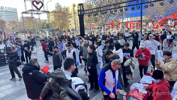 在苏宁广场前,各位跑友们摩拳擦掌、热情高涨,他们有的在充分进行热身运动,有的三五好友在赛前合影留念。