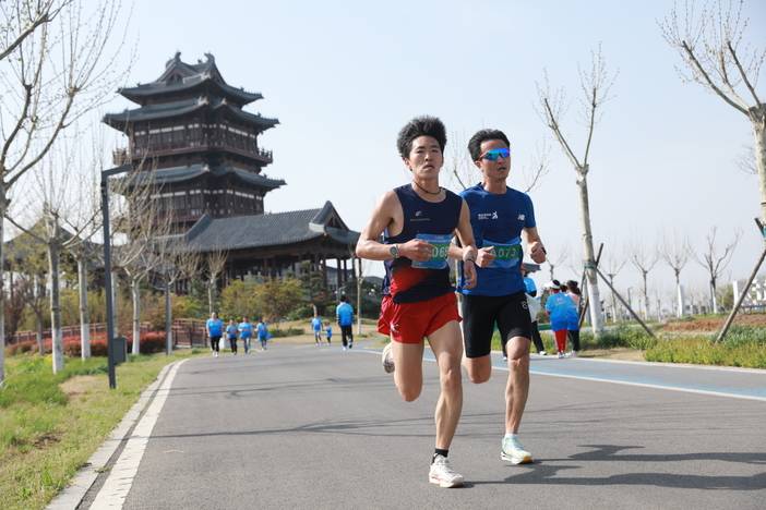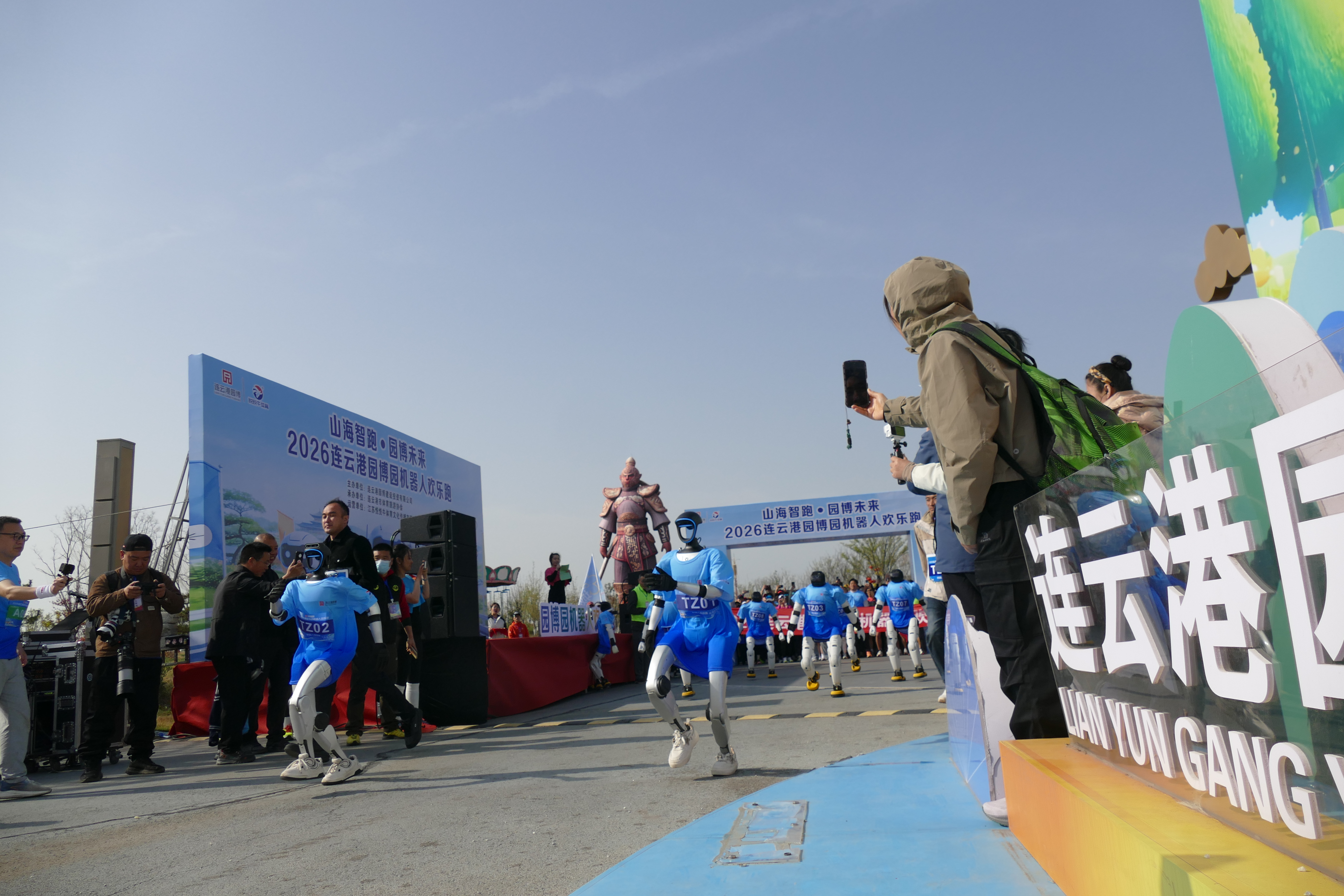 赛道沿途,智能机器人化身 “AI 陪跑官”,灵活避障、同步配速,与跑者并肩前行;连云港园博园的花海、亭台、水景尽收眼底,一步一景,让奔跑成为一场沉浸式的自然与科技之旅。