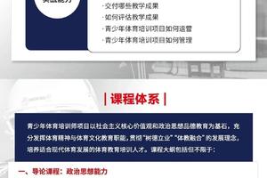 青少年体育培训师项目旨在为行业培养稀缺的体教融合实用型人才,是城市青少年体育健康教育的实施者和推动者,是全面实现健康中国和体育强国计划的桥梁和纽带