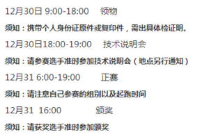 ③所有参赛选手必须佩戴号码布于外衣明显位置,否则予以取消成绩;