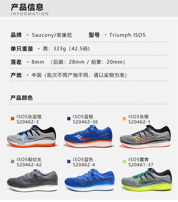 Saucony索康尼 Triumph 胜利ISO5男缓冲缓震圣康尼跑鞋运动鞋