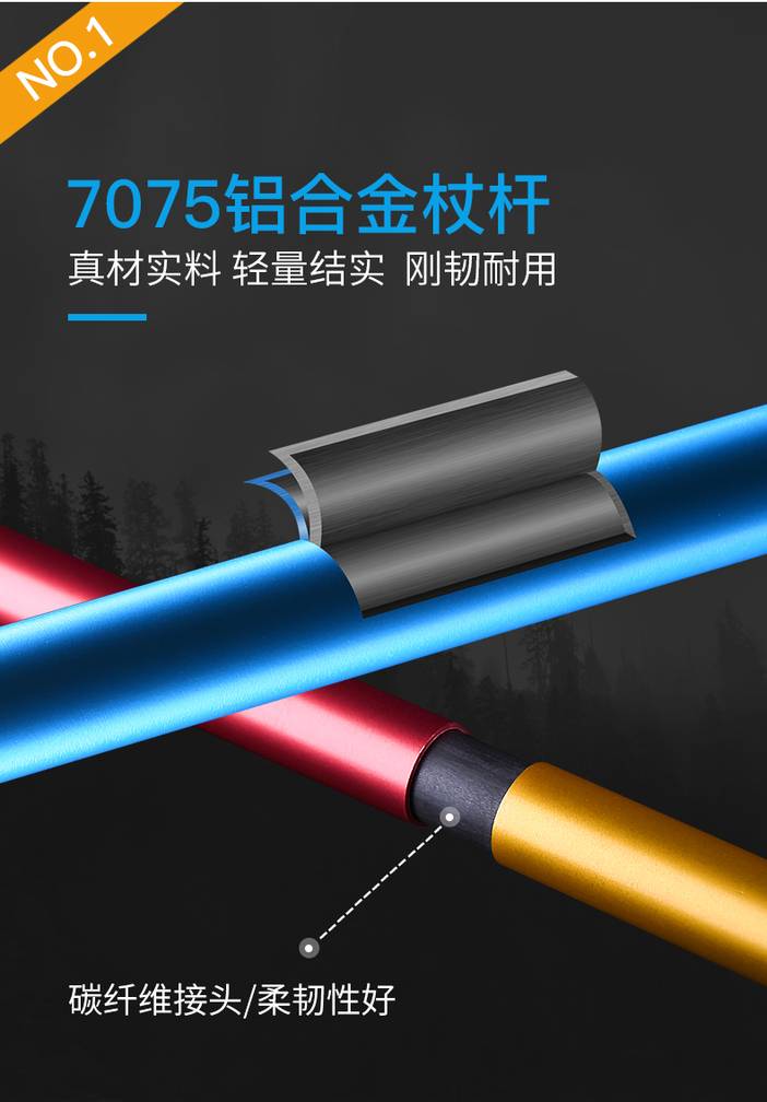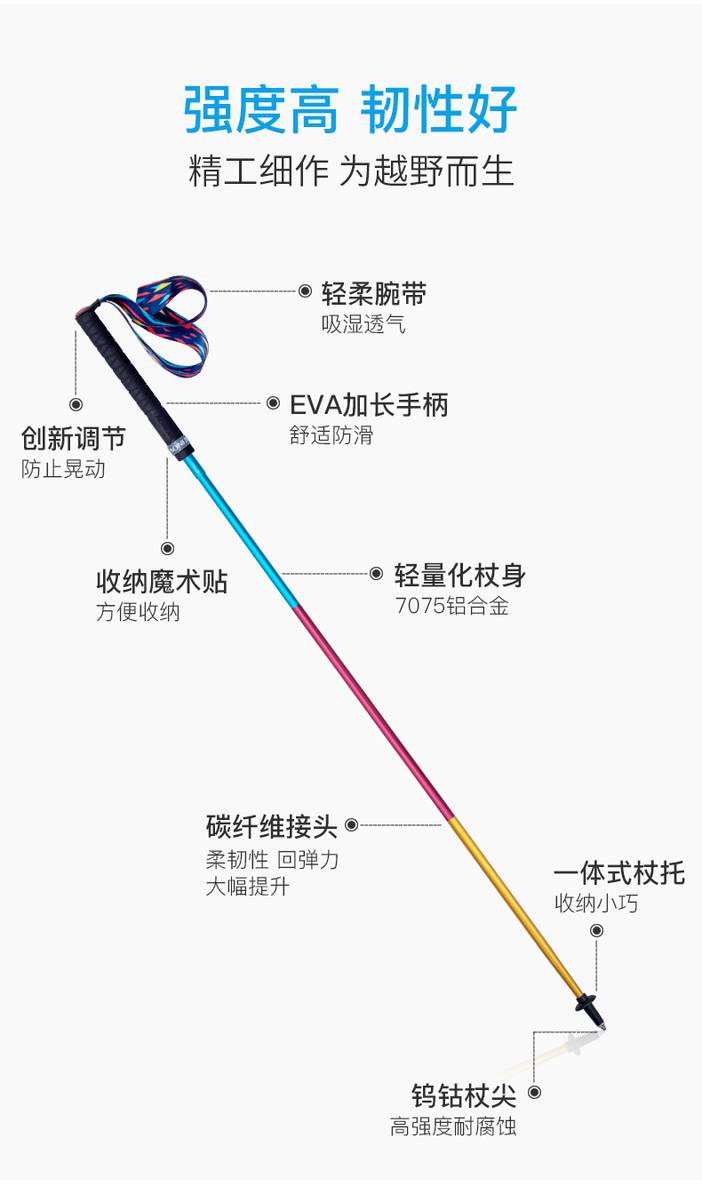 登山杖四节铝合金碳素超轻折叠户外越野跑手杖Z杖行山杖仅153g