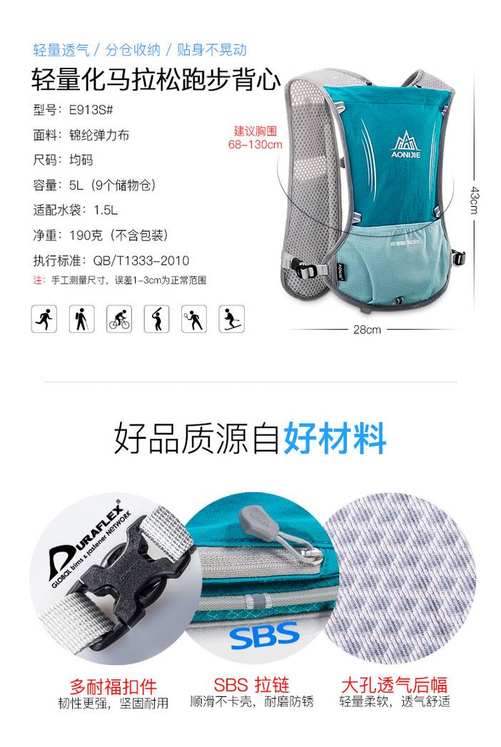 奥尼捷越野跑步背包男双肩女超轻户外徒步水袋包防水骑行包5L